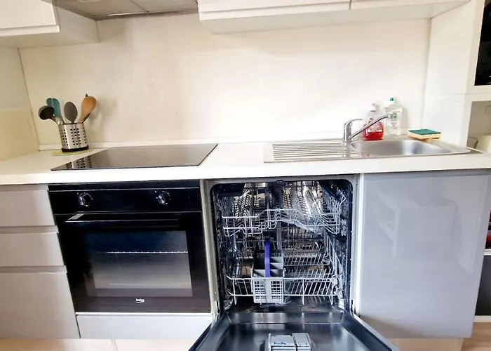 - ❓Bietet das Apartment seinen Gästen eine Küche?Ja, das Apartment ist mit einer kompletten Küche ausgestattet und bietet außerdem einen Wasserkocher, einen Kühlschrank und einen Herd.